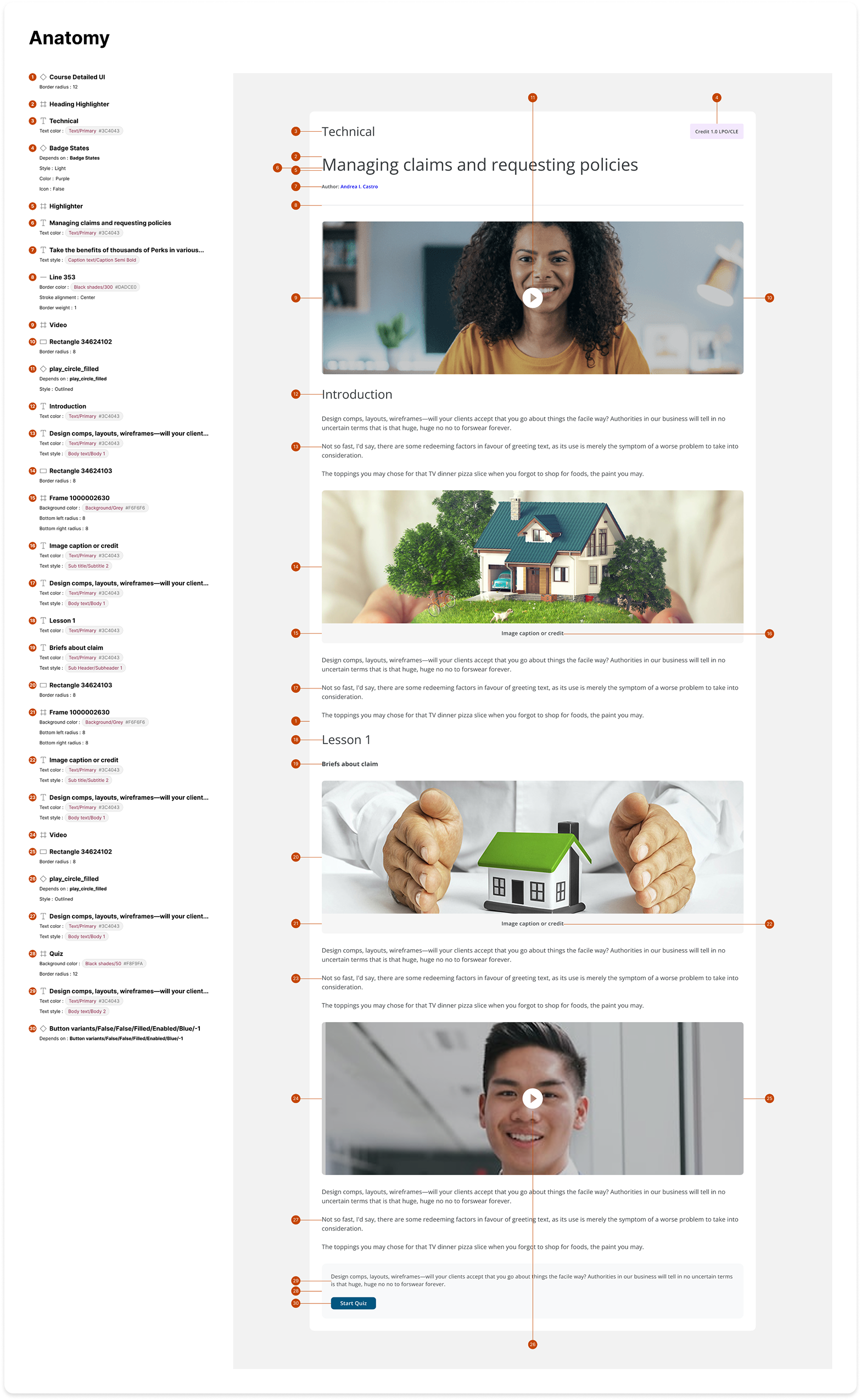 After completing my research, I had a clear vision of the content structure for each site and how it could be presented. While designing wireframes, I identified common UI elements for potential inclusion in the design system.
