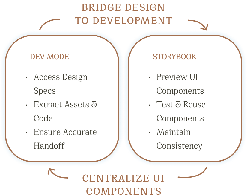 Seamless Design-to-Development Workflow To bridge the gap between design and development, I implemented a structured handoff process using Dev Mode and Storybook.