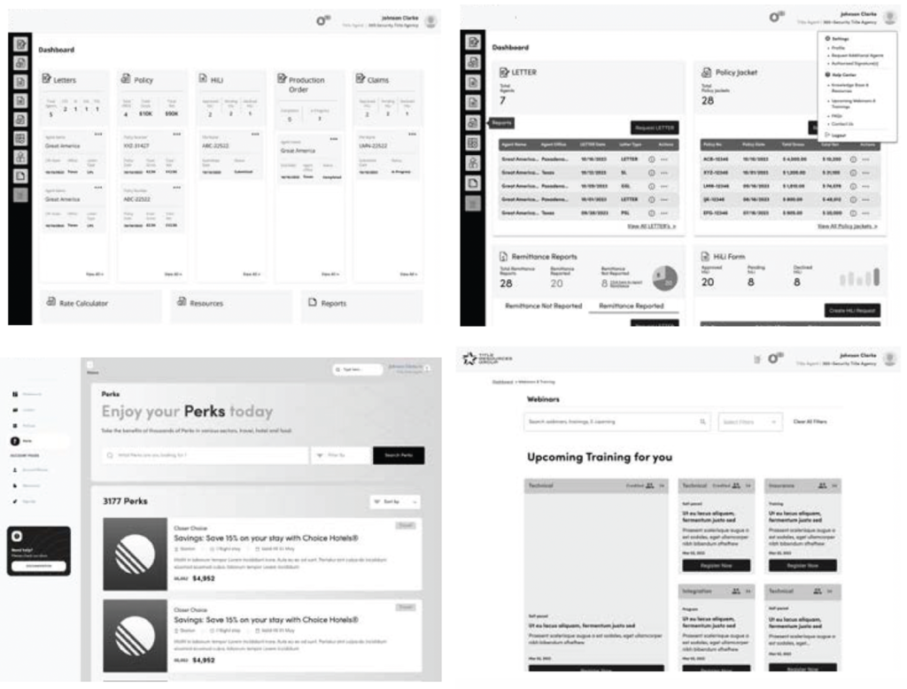 As a crucial first step in the design process, I conducted in-depth research to understand Title insurance’s specific needs. I analyzed similar platforms, examining content structures, visual styles, and interaction patterns. By gathering insights from different insurance portals, and industry-related systems, I identified key trends and best practices to inform the wireframing stage.