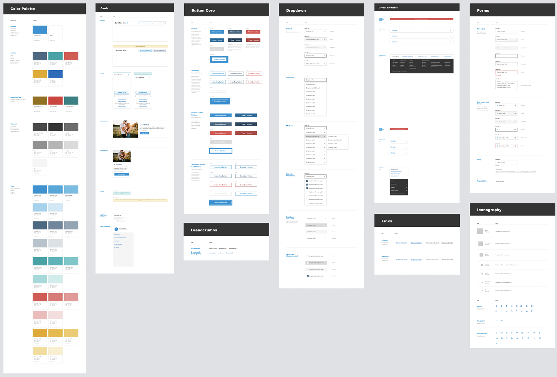 Built scalable atomic design components like, color palette, typographic scale, cards, core buttons (primary, secondary, mobile), form fields, breadcrumbs, dropdown states, status messages ensuring visual consistency, accessibility, and faster development cycles.