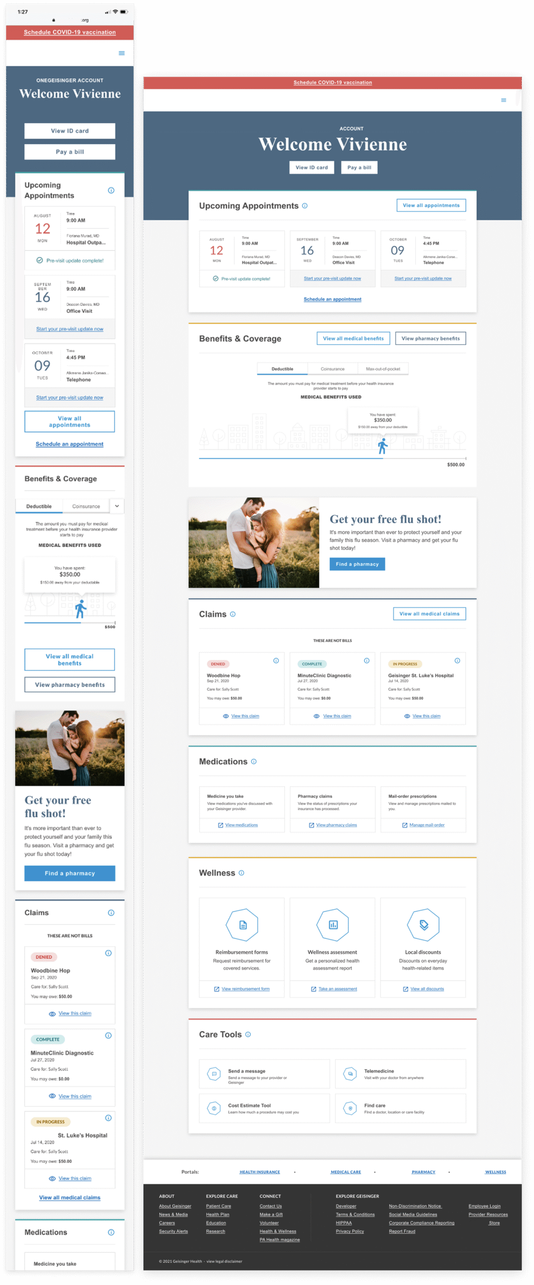 OneH is a leading healthcare and wellness organization in Pennsylvania, offering primary care, specialty medicine, insurance, and pharmacy services. The goal was to unify fragmented digital experiences into a seamless, responsive, and personalized ecosystem for patients, members, and healthcare providers (HCP).